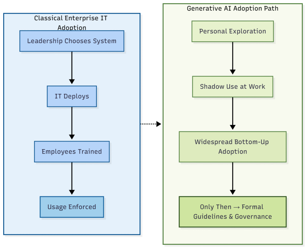 But in practice, neither of these groups determines whether AI becomes normalized in daily workflows.